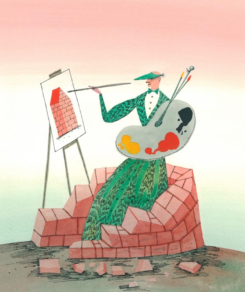 Die Aufgabe der Illustratoren ist eine heikle. Sie sollen den Text mit Bildern erleuchten. Das Bild ist naturgemäß vorlaut und hat die Macht, Texte zu zerstören. Das Bild drängt dem Betrachter nicht selten seine prägende Meinung ungefragt auf. Glückliche Illustratoren sind in der Regel die, welche eingeladen sind, als gleichberechtigte Autoren ihre Anteile an der Erzählung zu leisten.